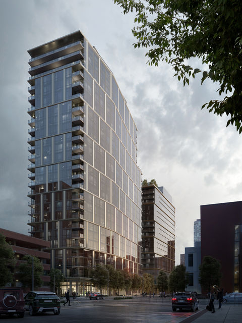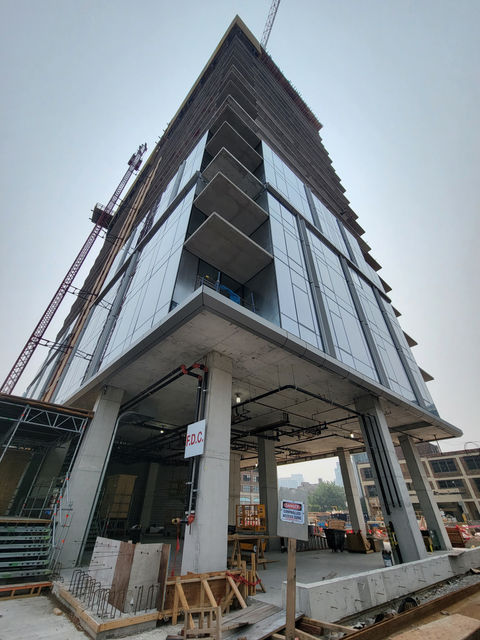 Multiple buildings are currently in construction on the site, including: A new construction 27 story post-tensioned concrete building with 411 dwelling units, two underground parking levels, amenity spaces, and two retail spaces on the first floor. A new construction 21 story post-tensioned concrete building with 238 dwelling units, three above grade parking levels, amenity spaces, and a retail space on the first floor. Along with future developments currently in the design phase that consist of an adaptive re-use of an existing three story concrete building originally constructed in the 1920's and a new construction mid-rise building to be built above a portion of the underground parking