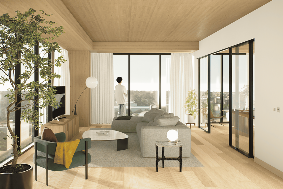 The Edison’s use of mass timber dramatically reduces environmental impact, lowering its embodied carbon footprint by up to 54% and cutting operational energy use by 45% compared to conventional buildings of similar size. The project is also targeting Passive House certification (PHIUS 2021), one of the most rigorous standards for energy efficiency worldwide.